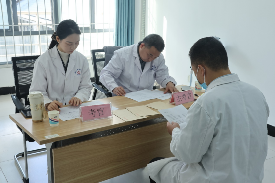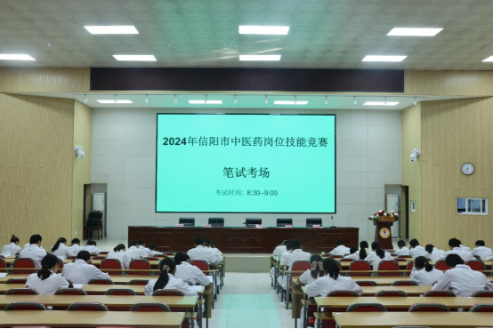 此次竞赛分为理论竞赛和技能竞赛两个部分,理论竞赛采用闭卷的方式进行,技能竞赛分为舌诊、常见中药辨识、病案分析和脉诊四个考站。信阳市卫生健康委三级调研员唐显东、中医科科长郭海平到比赛现场观摩指导。