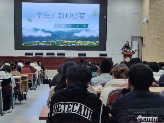 网投十大信誉可靠平台团总书记邱波以《学生干部的角色定位和工作方法》为题,为24级学生干部带来了一场精彩纷呈的授课。邱书记强调学生干部需明确自身角色,提升自我认知,以端正的学习与工作态度,妥善处理好与辅导员、学生干部及普通同学之间的关系。他进一步阐释了学生干部的意义、要求及工作方法,并寄语学生干部们要围绕“提高自己、服务同学、奉献学校”的十二字方针,严于律己,以身作则,展现良好作风。