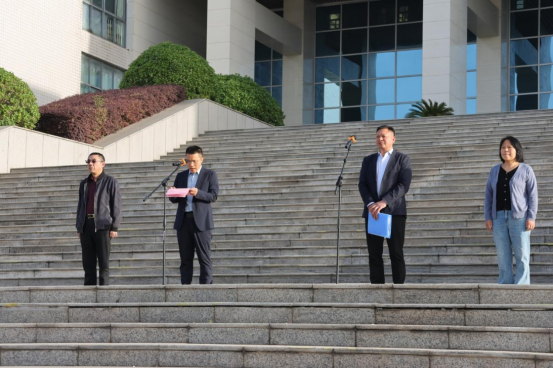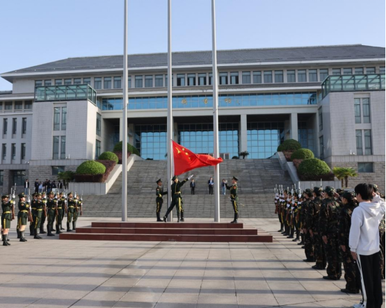 仪式开始,国旗护卫队迈着整齐的步伐入场,在庄严的国歌声中,五星红旗冉冉升起,全体师生肃立行注目礼。随后,章涵书记发表讲话,围绕“追溯安全历程”“凝聚安全共识”“传承安全使命”等三个维度展开,结合网络安全、生物安全等日益凸显的非传统安全威胁,向全体师生发出号召,呼吁大家将国家安全意识转化为实际行动,强调同学们应充分立足自身专业特色,积极投身国家安全教育宣传活动,扩大国家安全知识的传播范围,增强全民安全意识。