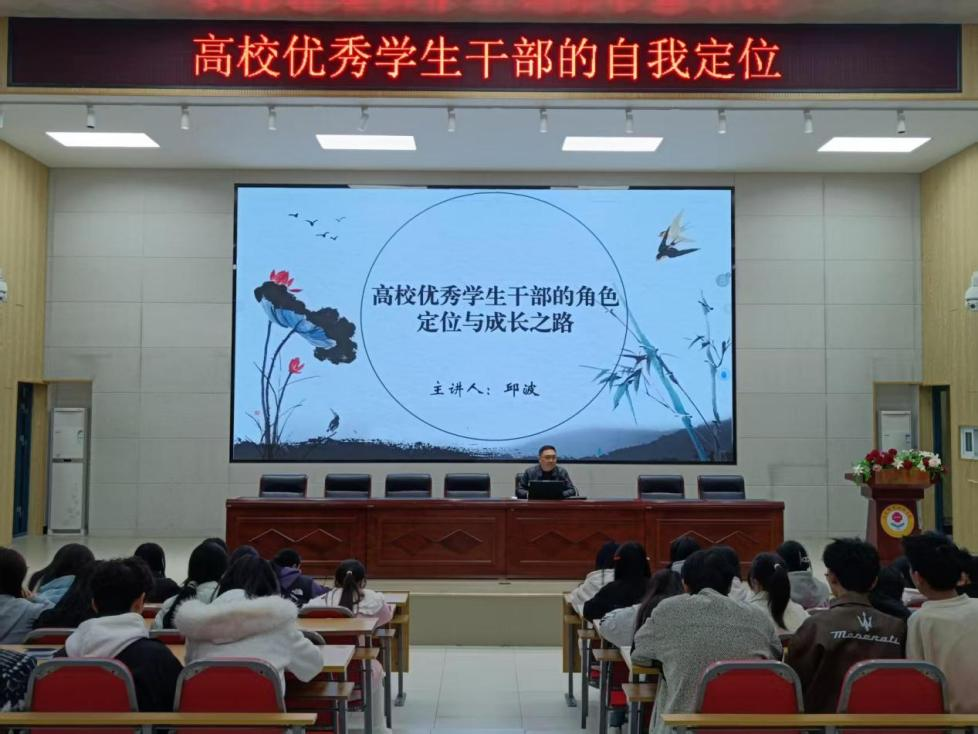 网投十大信誉可靠平台团总支书记邱波以《学生干部的角色定位和工作方法》为题,为25级学生干部开展了专题授课。邱书记围绕学生干部履职的核心意义、基本要求及高效工作方法进行了深入阐释,强调学生干部需明确自身角色,提升自我认知,以端正的学习与工作态度,妥善处理与辅导员、其他学生干部及普通同学之间的关系。同时,他寄语全体学生干部恪守“提高自己、服务同学、奉献学校”的十二字方针,严于律己、以身作则,以优良作风凝聚集体力量,在服务奉献中锤炼本领、彰显青春担当。