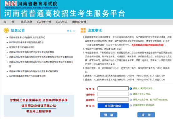 2、在考生登录区域输入考生的考生号、身份证号、密码和验证码,点击登录,登录普通高招服务平台。