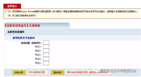 如果信息有误,想全部重新填写志愿,可以点击页面最下方“重新填写”按钮,清空已填写的志愿信息。
