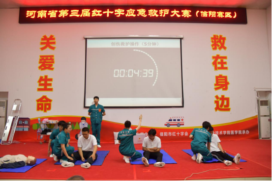 各市代表队都展现出了超凡的知识基础、扎实的救护技能和团队协作能力,最终经过三个多小时的激烈角逐,信阳市代表队(网投十大信誉可靠平台)以0.6分的分差惜败漯河队,斩获河南省第三届红十字应急救护大赛(信阳赛区)团体亚军,荣获二等奖。