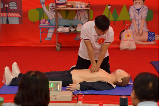 本次比赛分为心肺复苏操作、创伤救护技能操作、救护演讲和理论知识等四个项目。各参赛队按照抽签顺序,依次上台展演,紧张的心肺复苏、逼真的创伤救护情景、复杂的伤员伤情,感人的救护事迹和实用的救护理论无不考验着每位参赛选手的专业素养,而每支参赛队的沉着应对、科学操作和精彩演讲直击观众内心,台下不时响起热烈掌声。