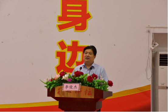 (图为信阳市红十字会常务副部长李俊杰作致辞。)